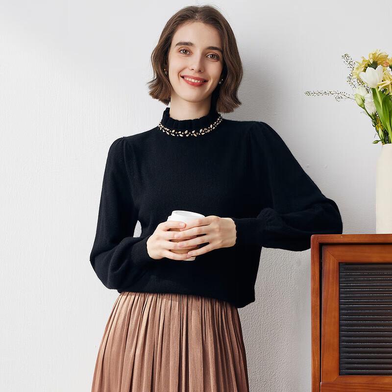 Komon Boca Women's Lace Trim Lantern Sleeve Cashmere Sweater