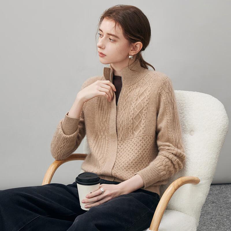 Komomoka Women's Thickened Cashmere Zipper Cardigan