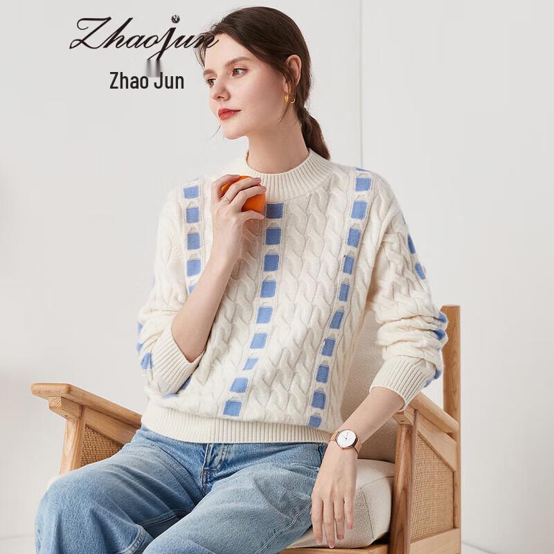 Zhaojun Women's Plaid Cashmere Half-Turtleneck Sweater