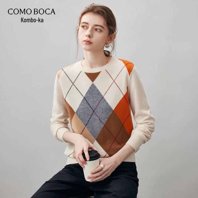 Женский свитер Komongboka из 100% кашемира с круглым вырезом и узором аргайл — купить товар онлайн с бесплатной доставкой по всему миру!