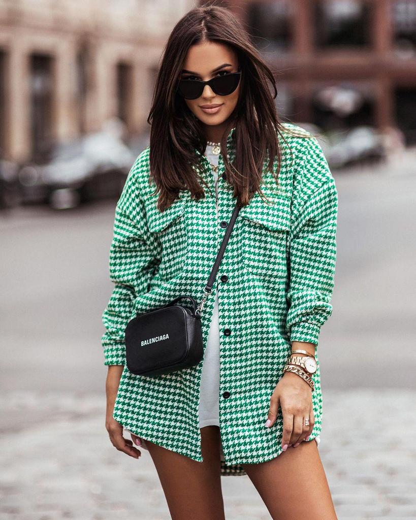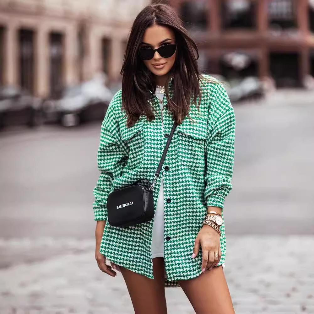 Women's Houndstooth Long Sleeve Shirt for Autumn/Winter
