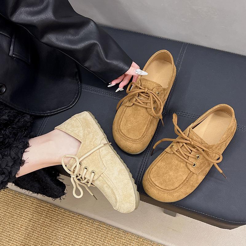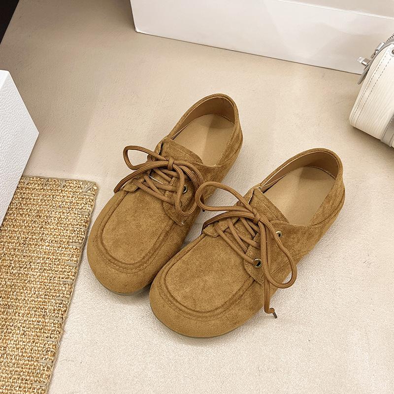 Французские лоферы, женские матовые замшевые оксфорды на шнуровке, не утомляющие ноги, мягкая подошва, круглый носок, маленькие кожаные туфли на шнуровке
