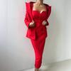 Осенний 2025 года Европейский и Американский Женский Однобортный Костюм-Двойка с Красным Лацканом — купить товар онлайн с бесплатной доставкой по всему миру!