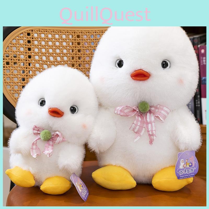 Клетчатый бант Милый маленький желтый и белый утенок Мультяшная плюшевая игрушка для подарка детям