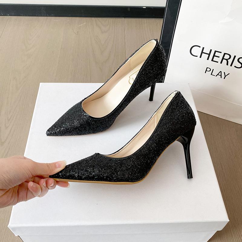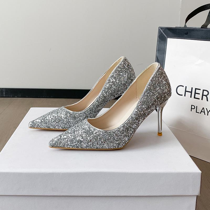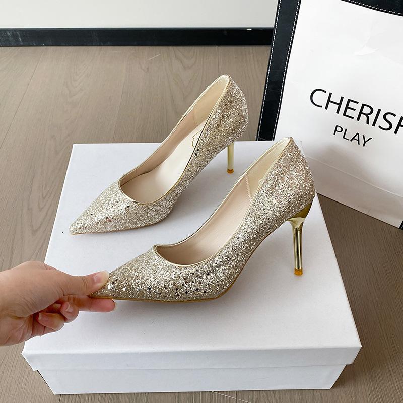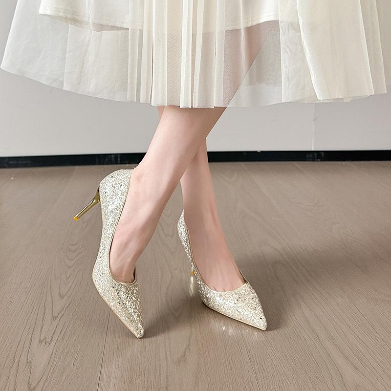 2025 новые свадебные туфли Сюхэ, туфли невесты, туфли-лодочки, хрустальные пайетки, высокие каблуки, женские туфли на тонком каблуке с острым носком, банкетные туфли