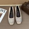 Французские вечерние туфли 2025 осень новинка плоская подошва квадратный носок маленький ароматный ветер одна педаль нежные с мелким вырезом одинарные туфли женская обувь