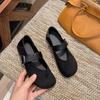 Темпераментные туфли с круглым носком на плоской подошве женские 2025 новые весенне-осенние французские ретро Мэри Джейн маленькие кожаные туфли с открытым верхом для работы