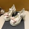 Туфли Мэри Джейн из маленькой кожи, милые и крутые туфли на высоком каблуке с бантом, женская весна и осень 2025 взрыв, туфли-лодочки с ремешком на одной пряжке, милые туфли jk