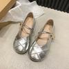 Серебристые туфли из мягкой кожи на плоской подошве, женская одиночная модель, лето 2025, новая универсальная обувь для беременных, одинарные туфли, туфли Мэри Джейн с юбкой