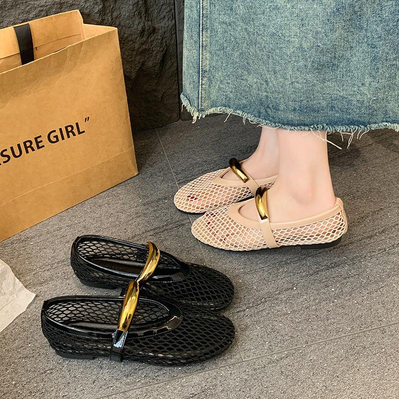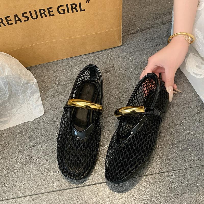 Дышащие одинарные туфли-сетка на плоской подошве женские 2025 новая летняя полая Мэри Джейн нежные вечерние туфли сандалии с закрытым носком