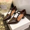 Французские маленькие кожаные туфли острые пряжка-одно слово полые модные туфли 2025 лето новые сказочный стиль универсальные высокие каблуки