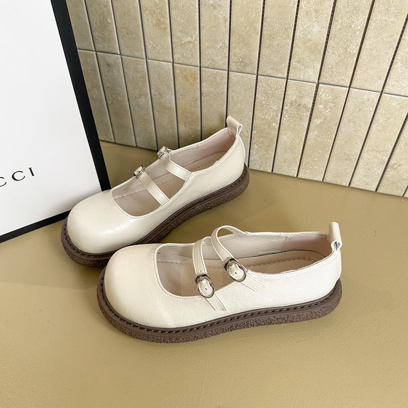 2025 весна и лето новая модель туфли Мэри Джейн на толстом каблуке с мягкой подошвой и круглым носком, дизайн с двойным ремешком с пряжками, модные универсальные женские туфли