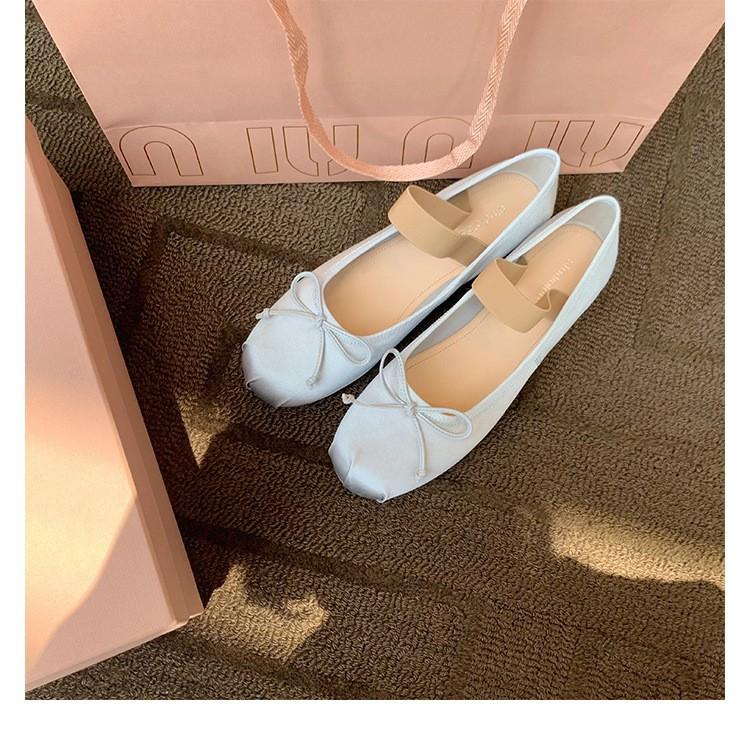 Женские балетки на плоской подошве 2025 весна новые с бантом ретро с мелким вырезом французские туфли Мэри Джейн ladyshoes