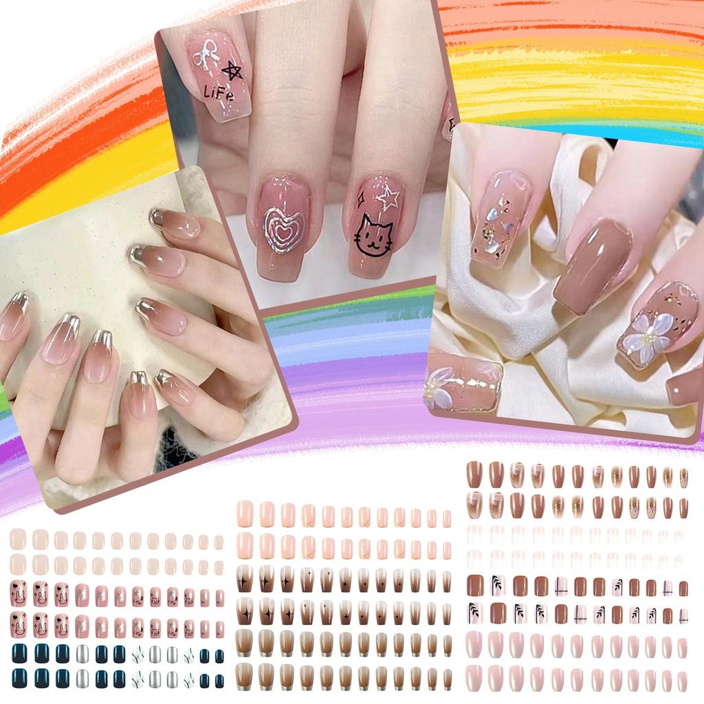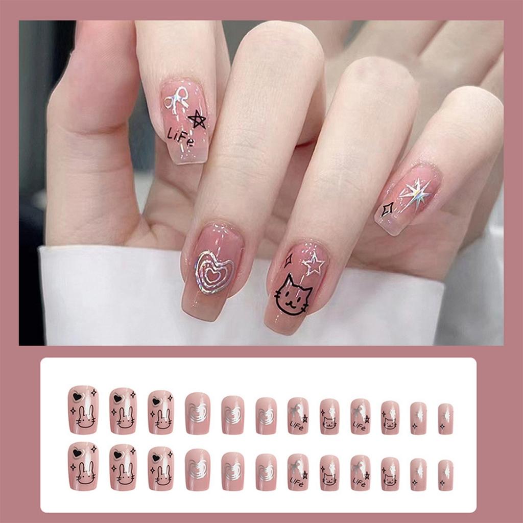 24 штуки коротких накладных ногтей, пресс-ногти, маникюр с блестками, наклейки для ногтей 10 мл