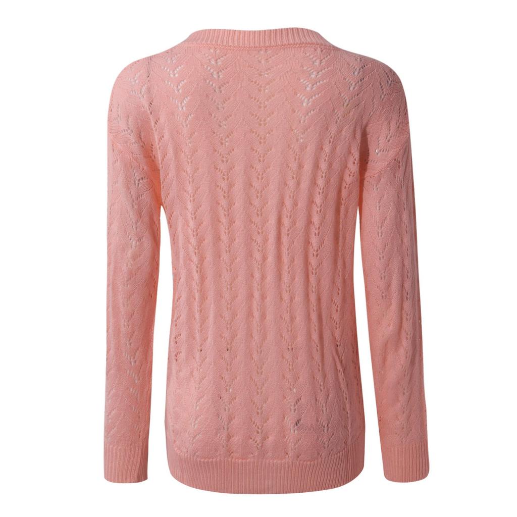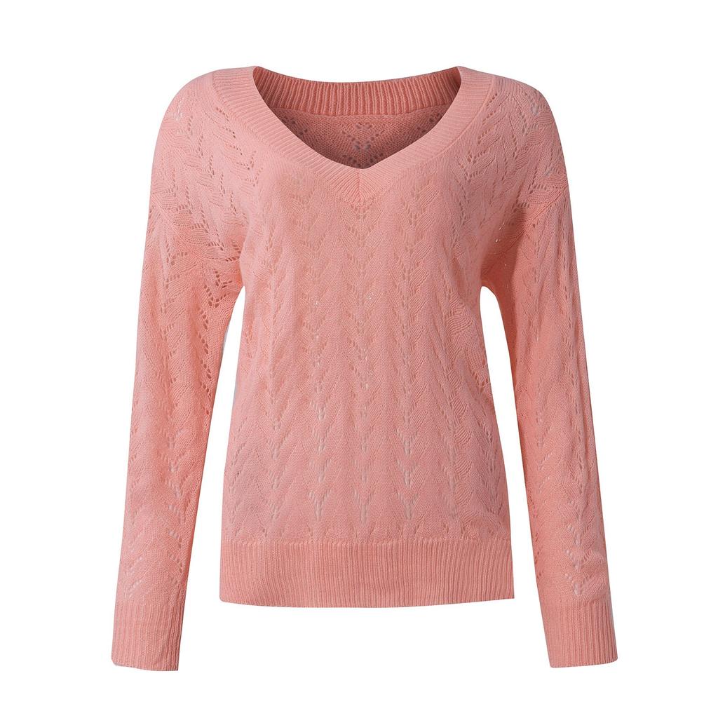 Женская и зимняя мода однотонный полый V-образный вырез длинный рукав вязаный свитер