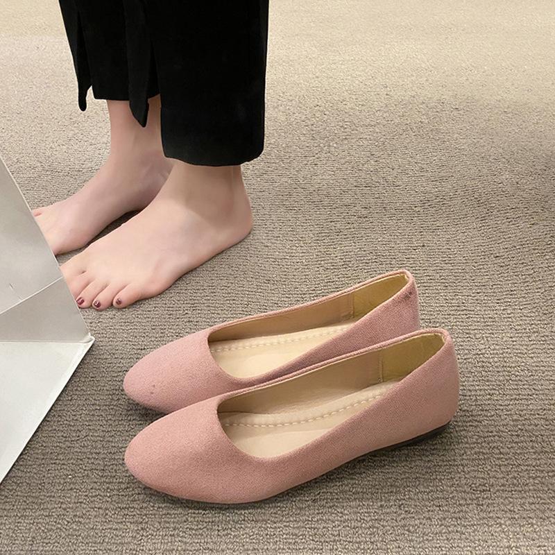 Замшевые туфли-лодочки женские на плоской подошве однотонные с острым носком на низком каблуке ленивые универсальные для беременных женщин женская обувь старые пекинские тканевые туфли женские большого размера