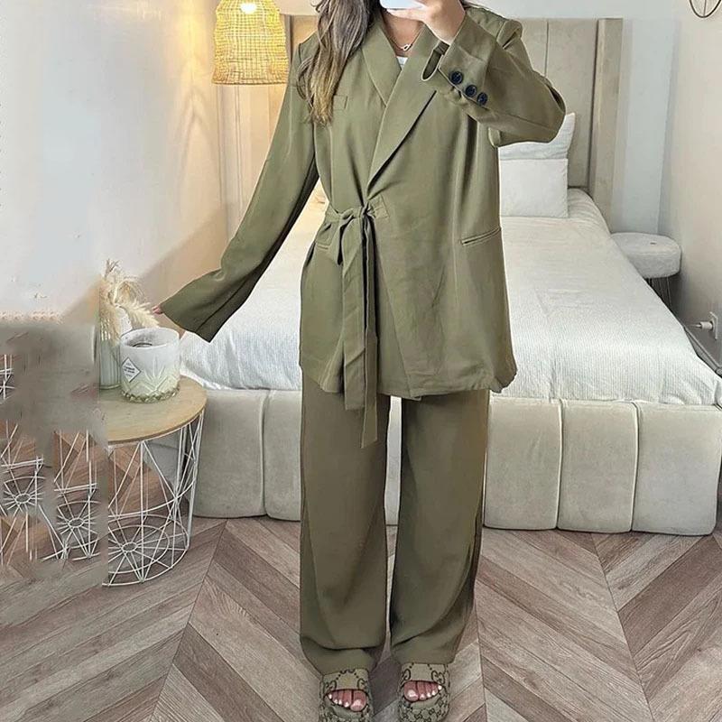 2023 Осень Европейский и американский однотонный модный костюм свободного кроя и комплект длинных брюк для женщин