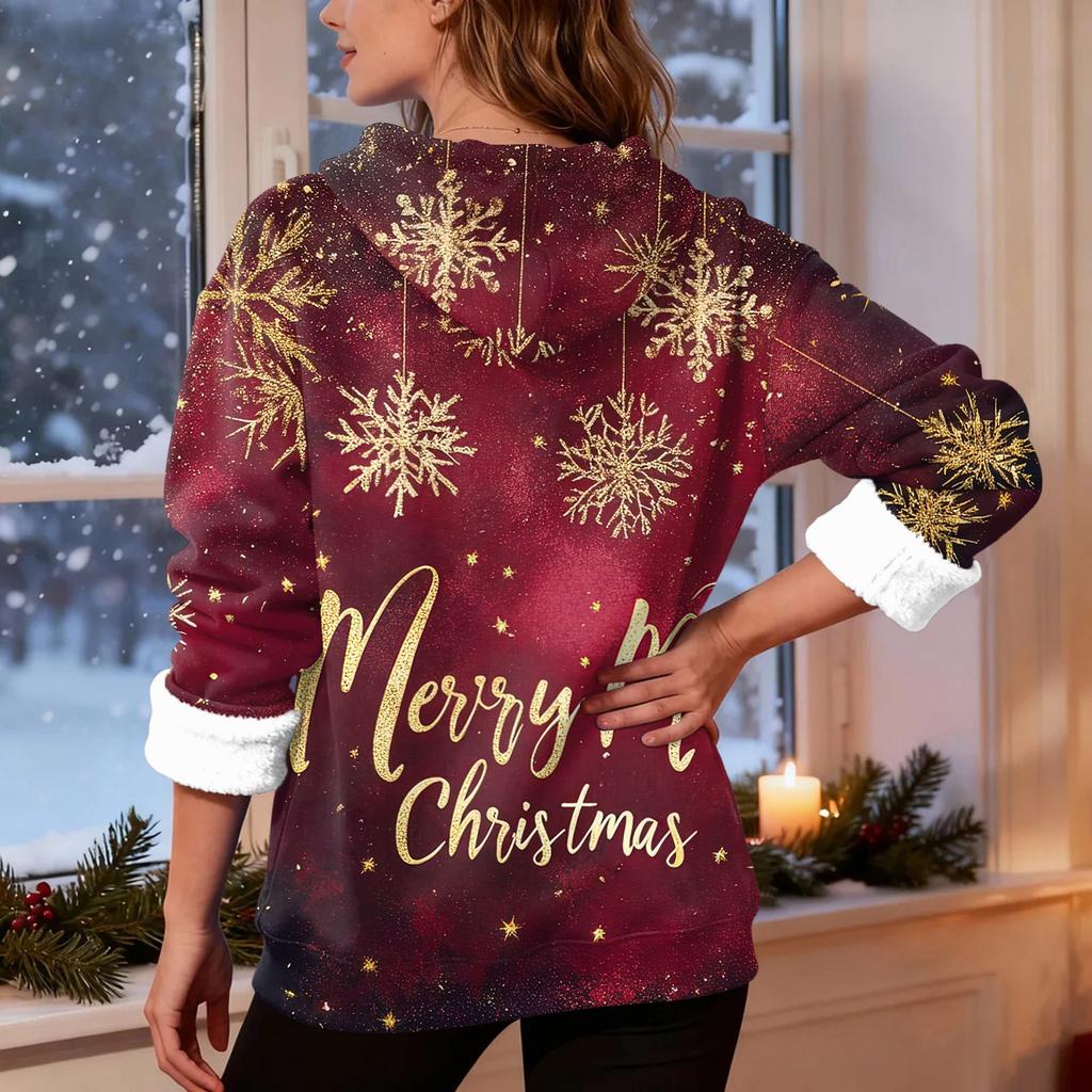 Женская модная повседневная толстовка с капюшоном и длинным рукавом с рождественским принтом
