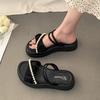 Двое носят крутые тапочки, летняя одежда, трендовая новая мода, стиль феи с жемчугом, сандалии на платформе с юбкой