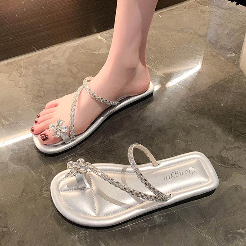 Французские вечерние тапочки-бриз женские летние новые цветочные со стразами прохладные тапочки плоская подошва высокое чувство одно слово