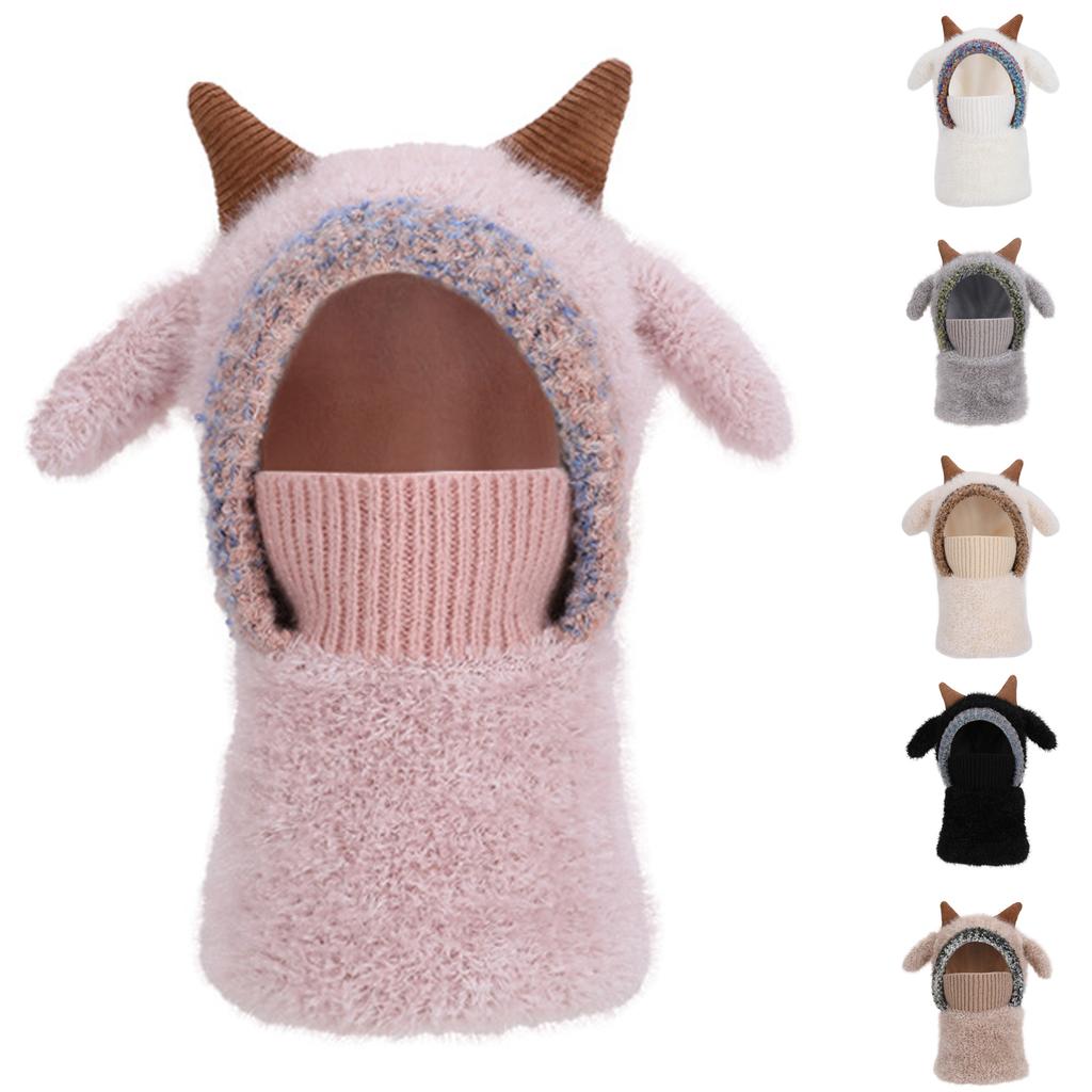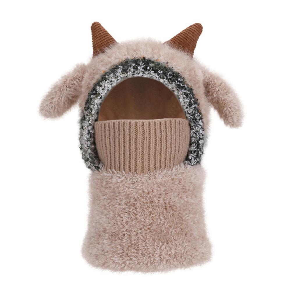 Детская плюшевая теплая шапка-пуловер с плюшевой маской и шеей