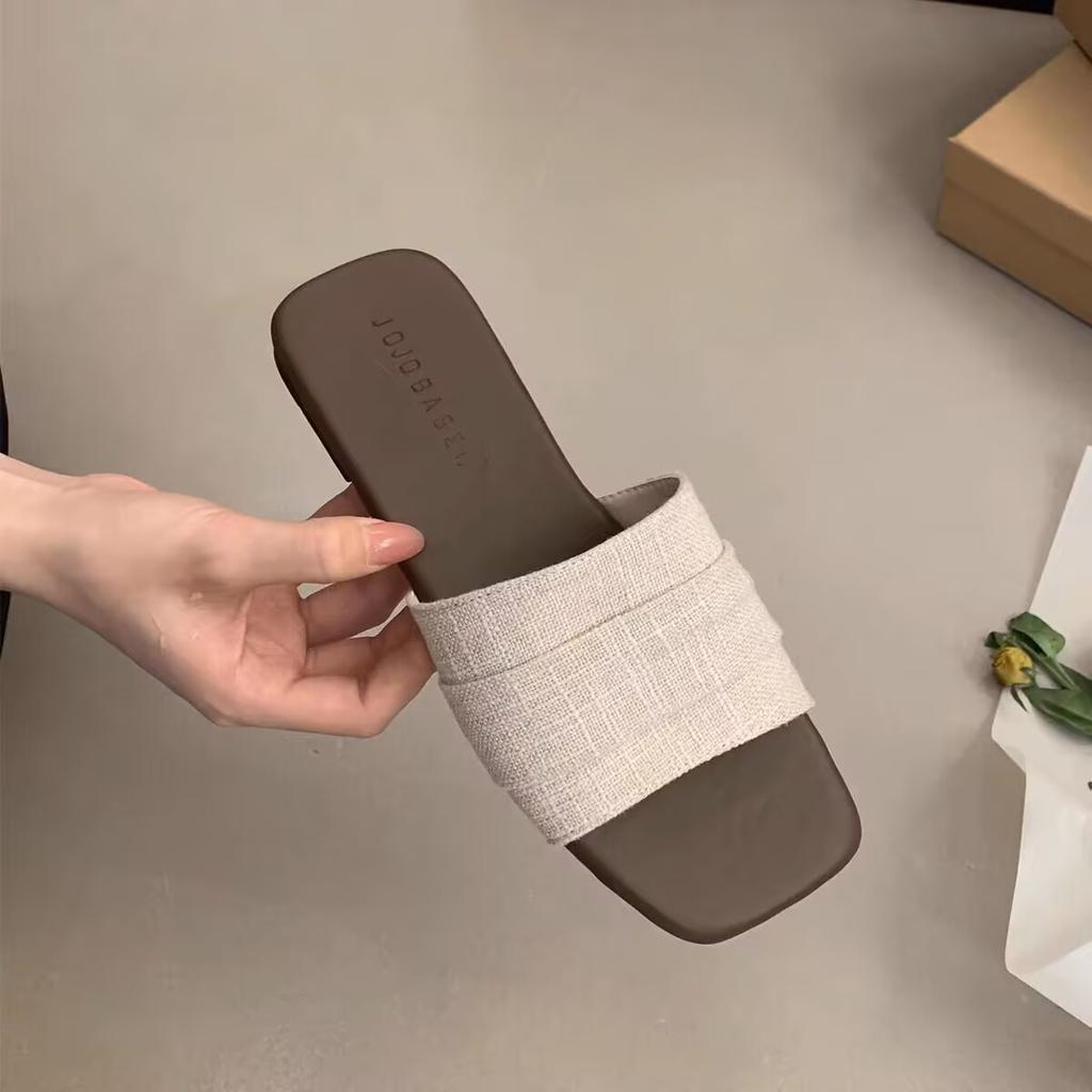 Серебристые шлепанцы на плоской подошве, женская обувь для улицы, новинка лета 2025 года, пляжные французские крутые шлепанцы на мягкой подошве