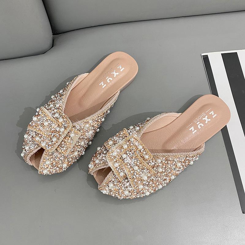 Босоножки с рыбьим носом женские весенние на плоской подошве со стразами, с закрытым носком, полушлепанцы, ленивые мюли, обувь интернет-знаменитости, в стиле для работы