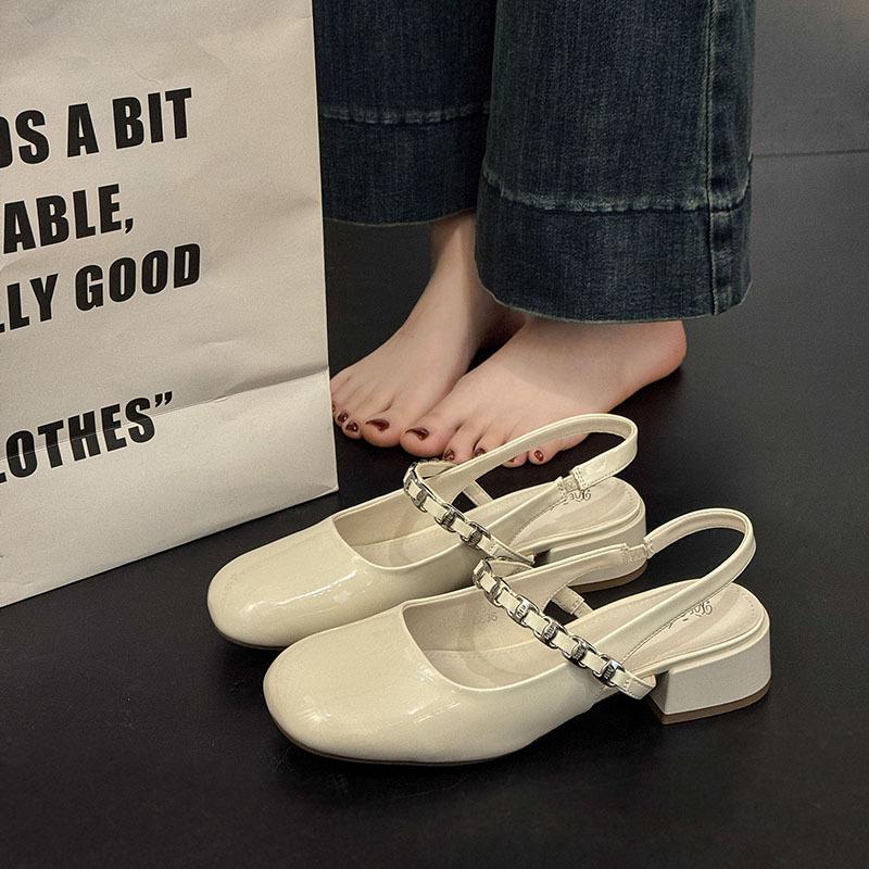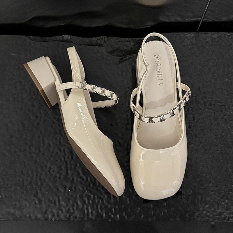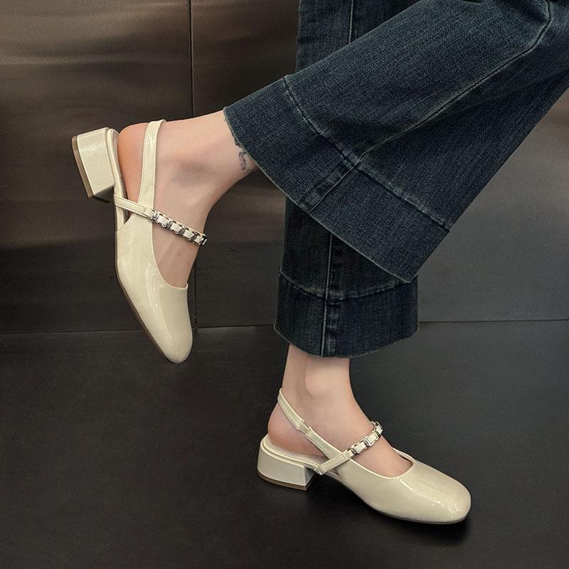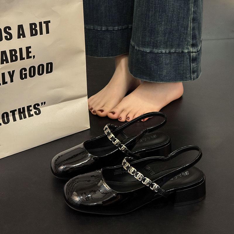 Мэри Джейн сумка голова сандалии женские лето 2025 новые квадратный носок толстый каблук средний каблук универсальные с открытой пяткой бриллиантовый ремешок сандалии женские