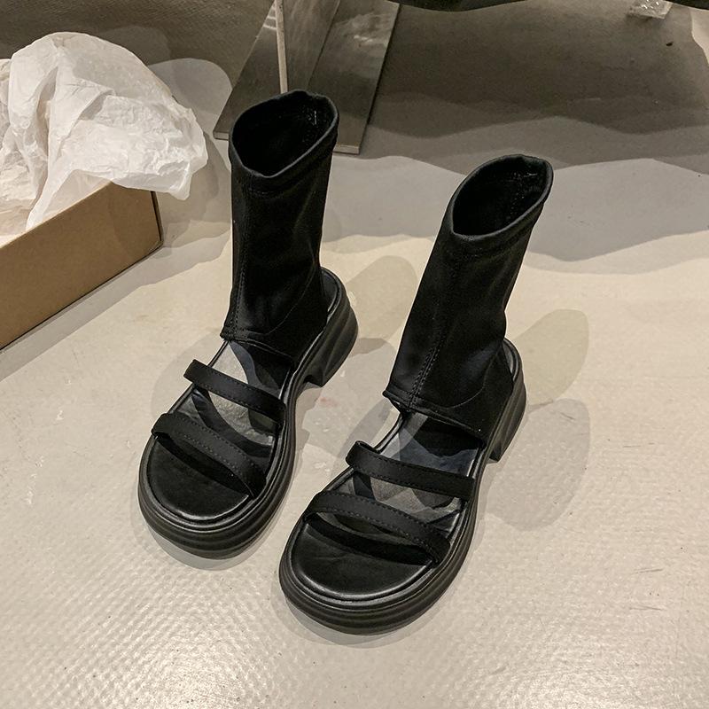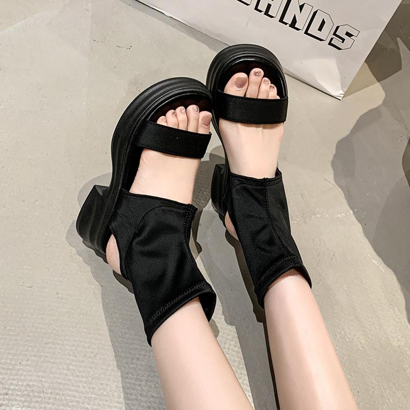 Черные сандалии на платформе с закрытым носком высокого класса женские 2025 новая летняя обувь увеличение роста с юбкой короткие голенища крутые ботинки