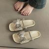 2025 новые европейские шлепанцы на плоской подошве с бантом из стразов, женские, крест-накрест из атласа, модные уличные шлепанцы с открытым носком
