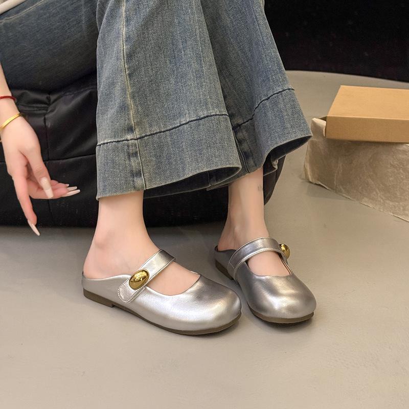 Ретро серебристые сумки с плоским дном, женская летняя одежда 2025, новые ленивые шлепанцы на одной педали, сандалии с юбкой