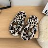 Леопардовый принт толстая подошва однословные пушистые тапочки женские носят 2025 новые весенние, осенние и зимние комнатные домашние интернет-знаменитость хлопковые тапочки