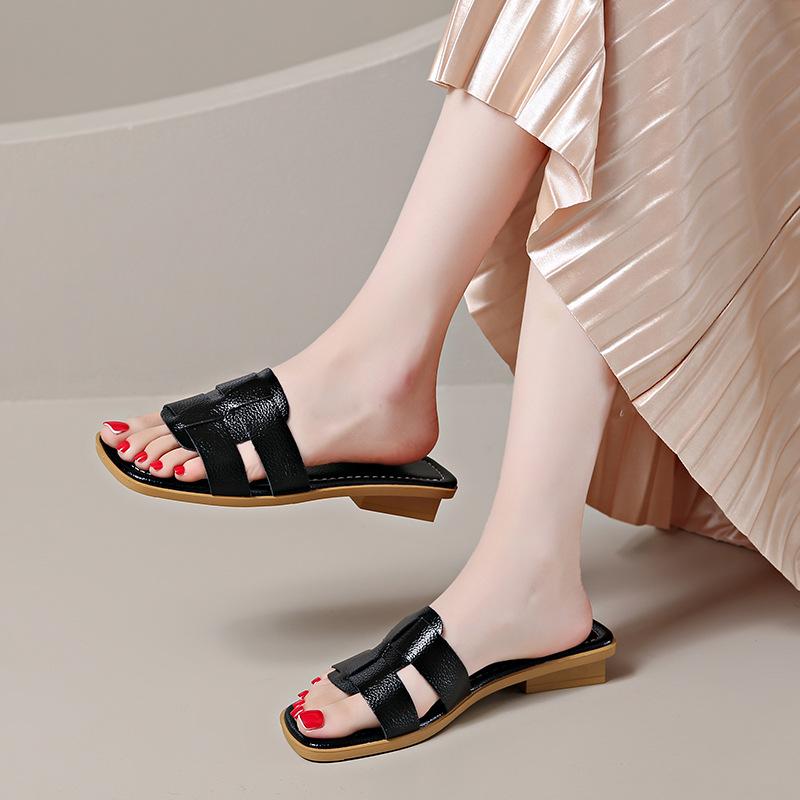 Женские шлепанцы большого размера с квадратным носком и плоской подошвой, летние новинки 2025 года, однотонные, простые, на низком каблуке, повседневные пляжные прохладные шлепанцы