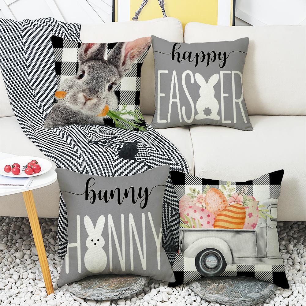 Пасхальная праздничная атмосфера Чехол для подушки с принтом букв и кролика Домашнее украшение Диванная подушка Подушка