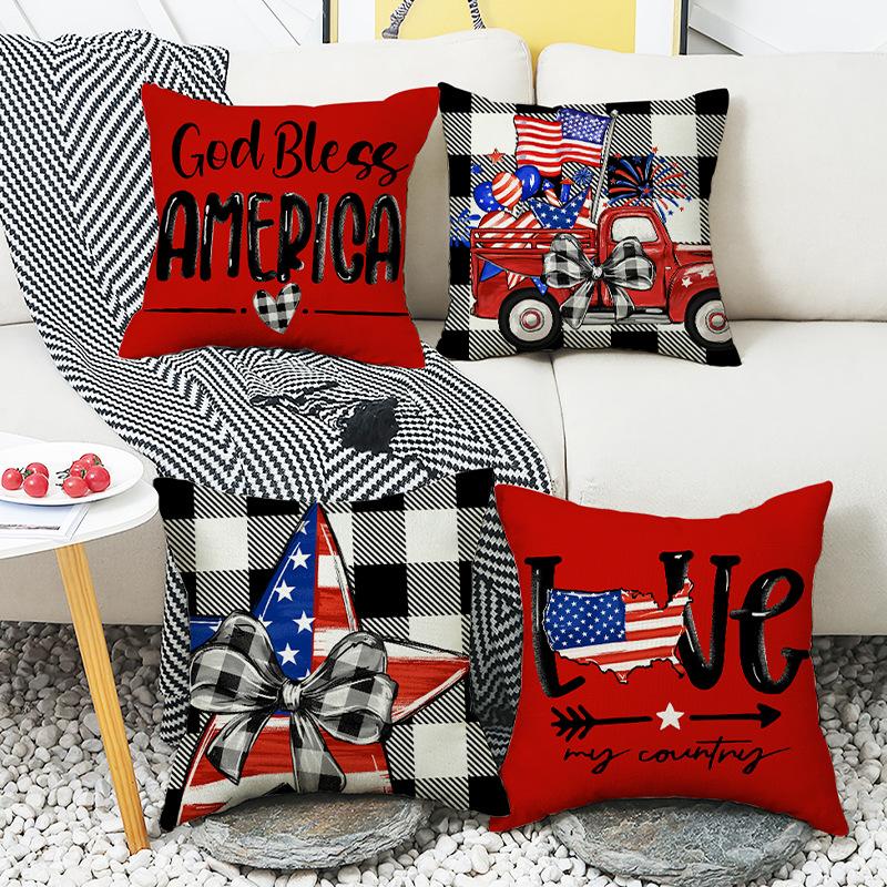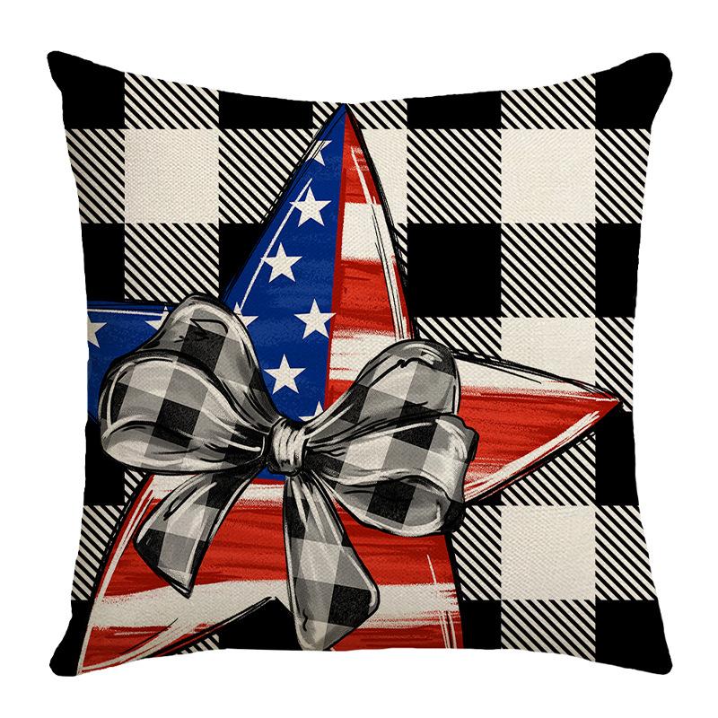 Новый набор из четырех предметов ко Дню независимости Флаг Пятиконечная звезда Принт букв автомобиля Клетчатый Наволочка для подушки для спальни дивана