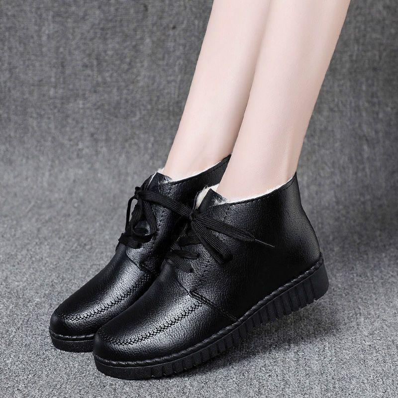 Зимние ботинки для снега 2024 года с плоской подошвой и круглым носком, теплые, мягкие, удобные, хлопковые, женские короткие ботинки, размер 35-40