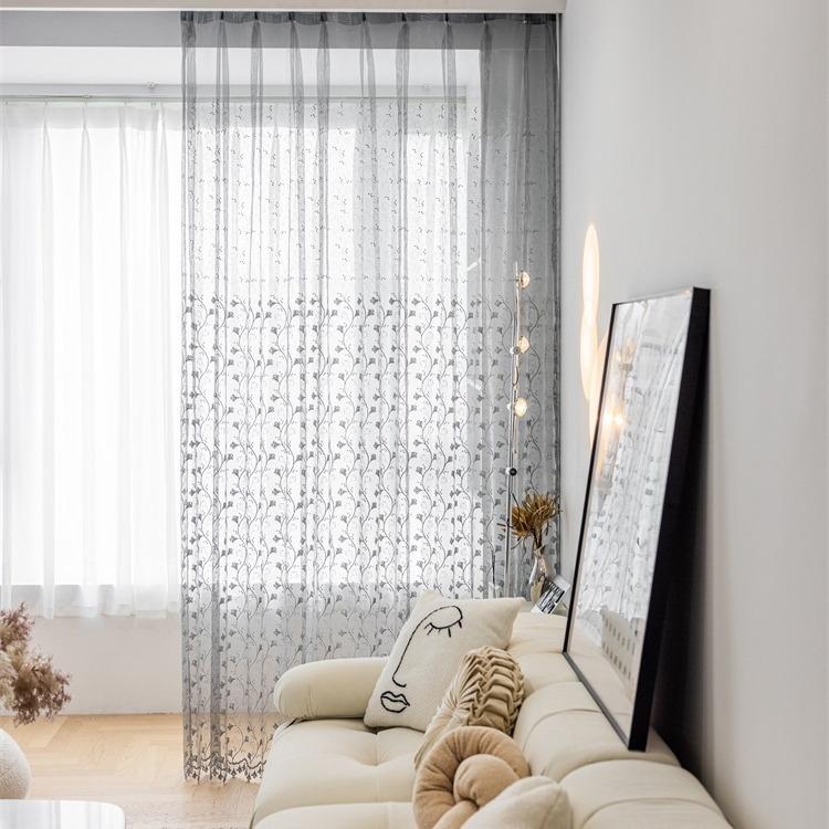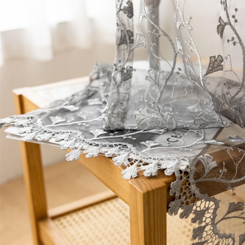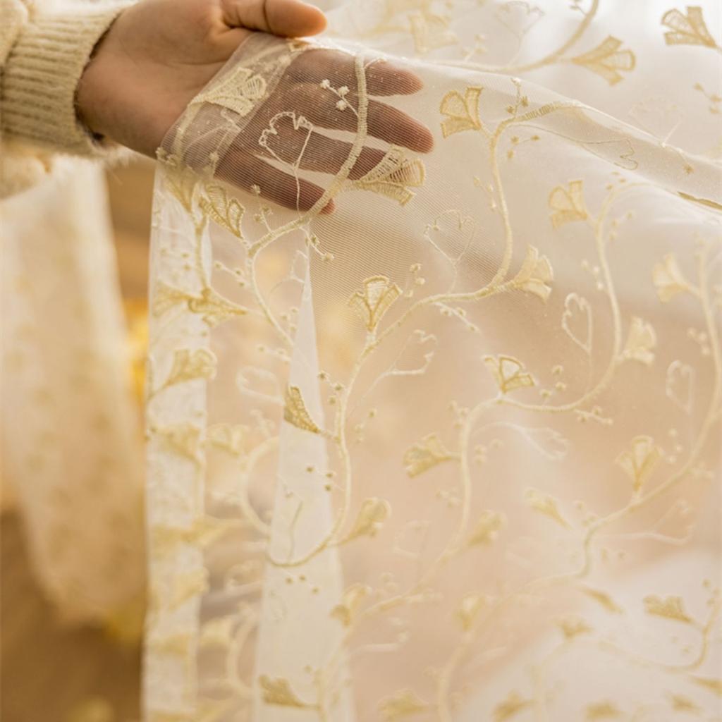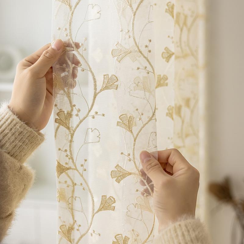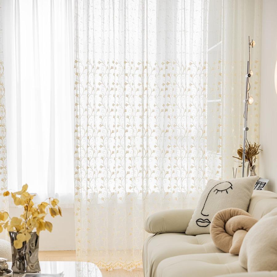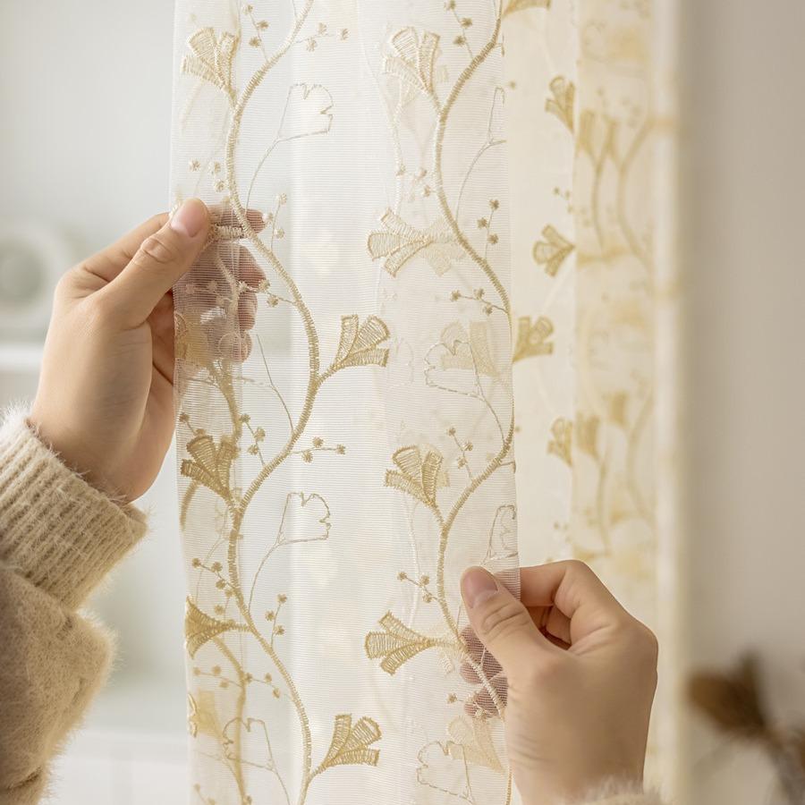 1 шт. жаккардовая вышитая кружевная занавеска с карманом для штанги с рисунком листьев гинкго, подходит для гостиной и спальни - прозрачные и светопропускающие занавески
