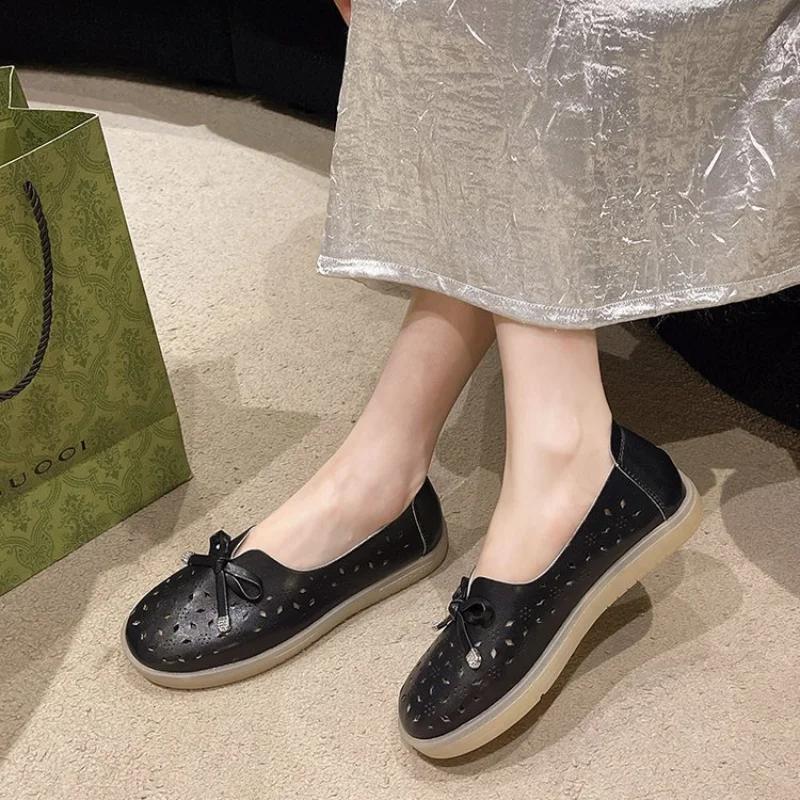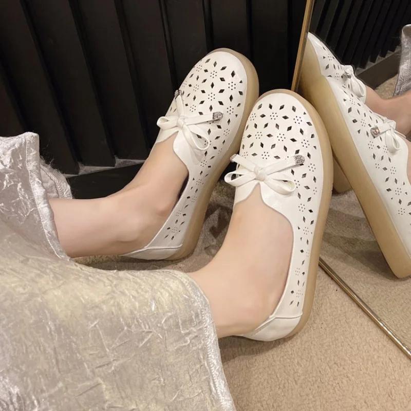 2024 Лето Новый Стиль Модные и Удобные Лоферы Ажурные Сандалии Плоская Подошва Женские Рабочие Туфли Повседневные Туфли на Платформе