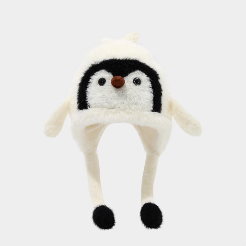 Милая мультяшная шапка-пингвин для детей, тепловой головной убор, зимняя детская плюшевая шапка с защитой ушей, детская толстая флисовая шапка-ушанка, шапка-бини с завязками