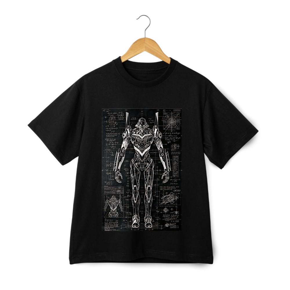 Футболка с принтом чертежа меха, Унисекс, с коротким рукавом