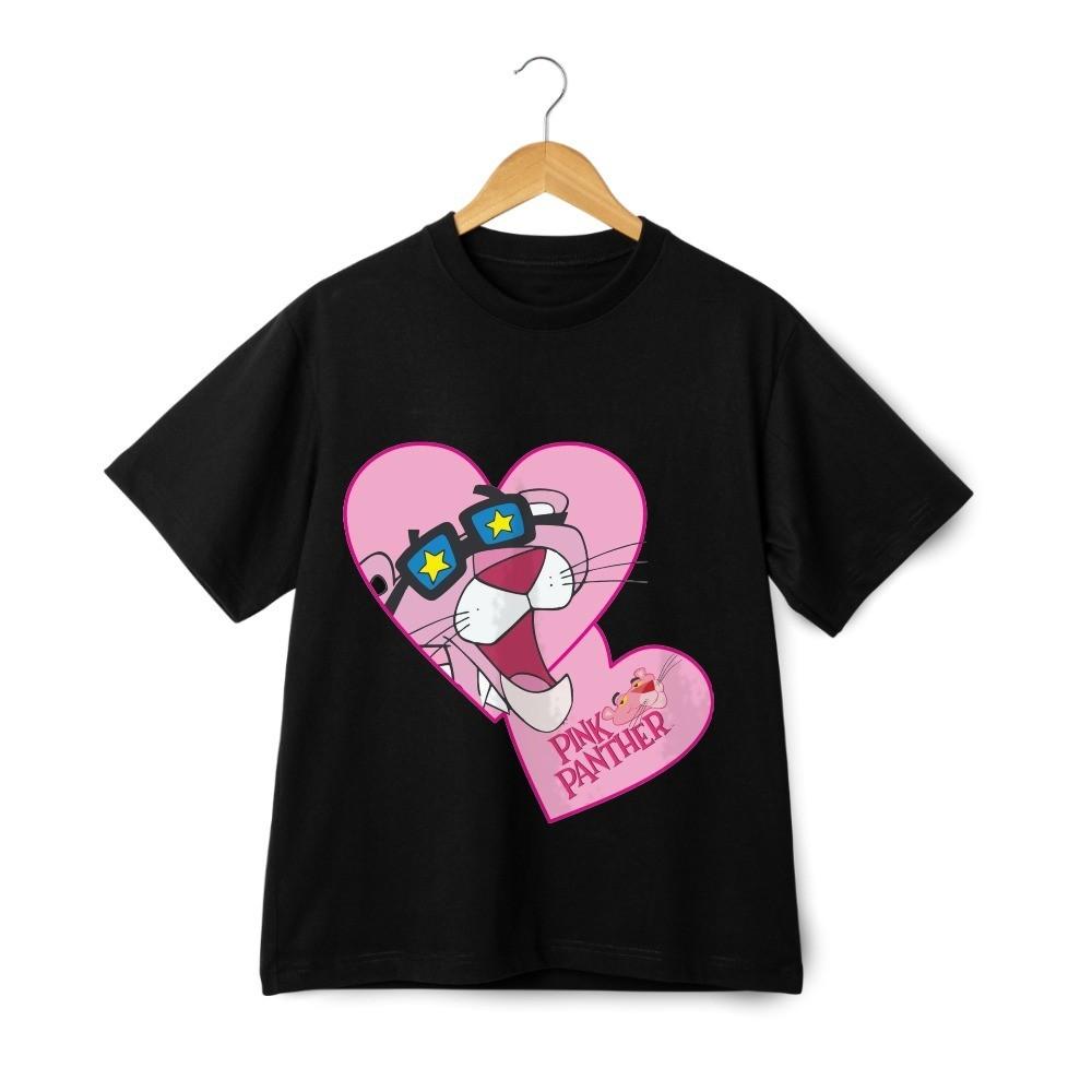 Розовая Пантера Звездные Очки Графическая Футболка с Сердцем – Крутая Мультяшная Уличная Футболка