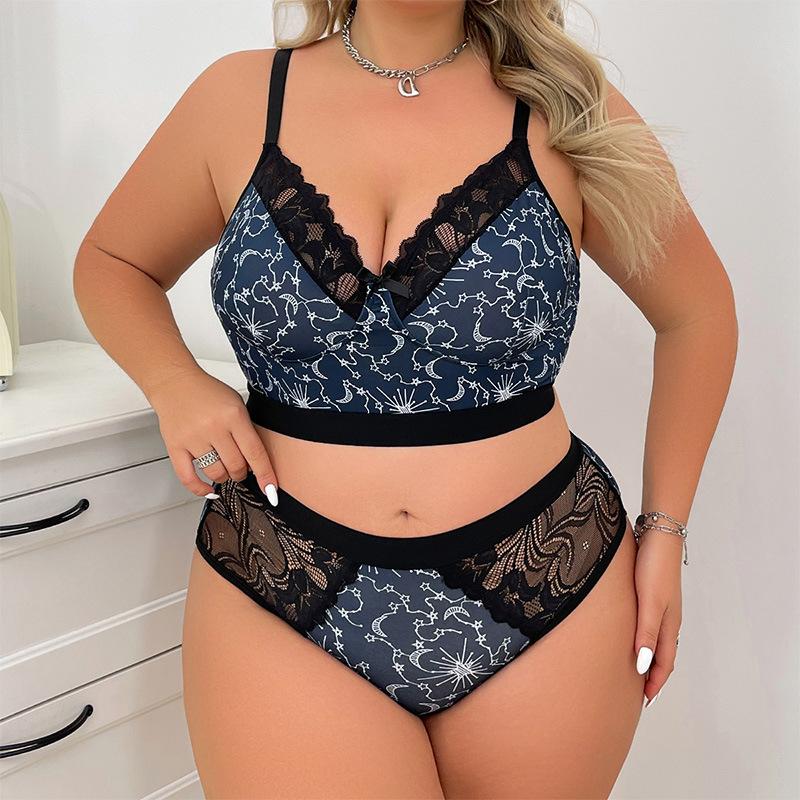 Европейский и американский комплект сексуального нижнего белья больших размеров, ажурный, темно-синий, элегантный комплект бюстгальтера