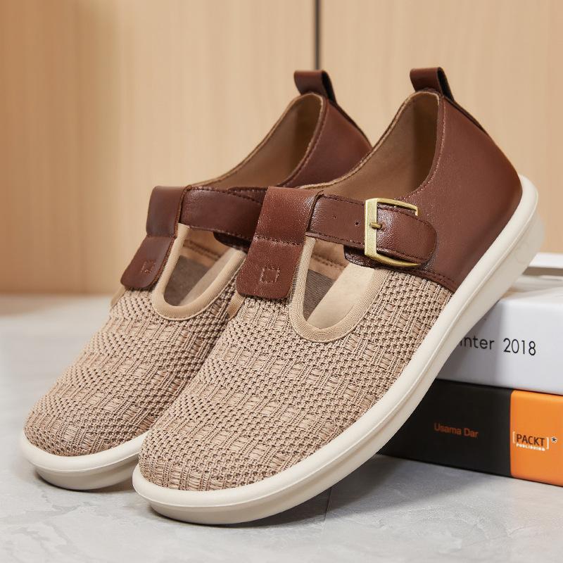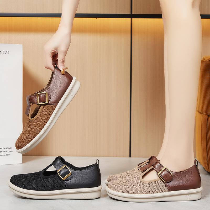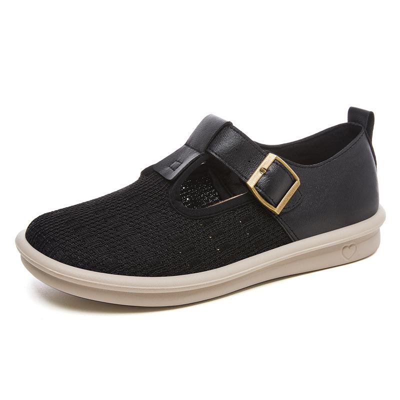 2025 Spring Summer New Women Single Shoes Thick Sole Woven Hollow Buckle Casual Sneaker Comfortable Breathable Women Cloth Shoes