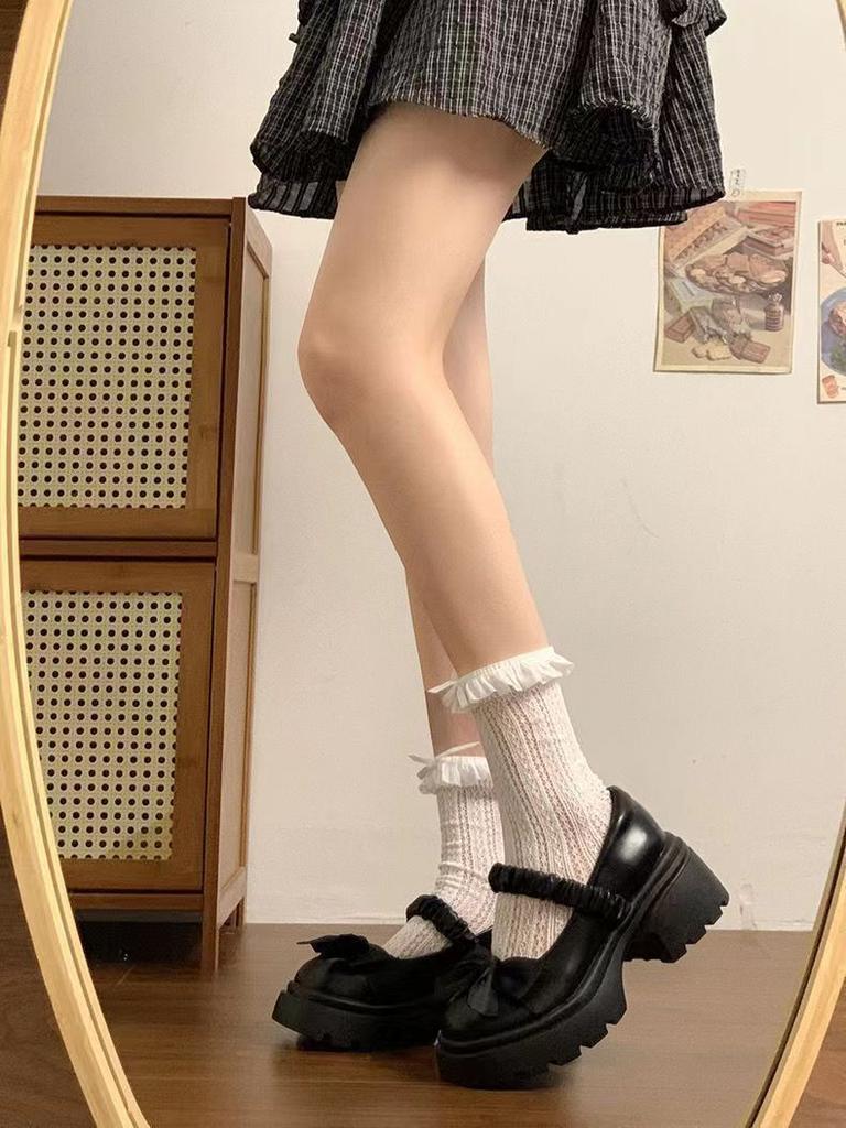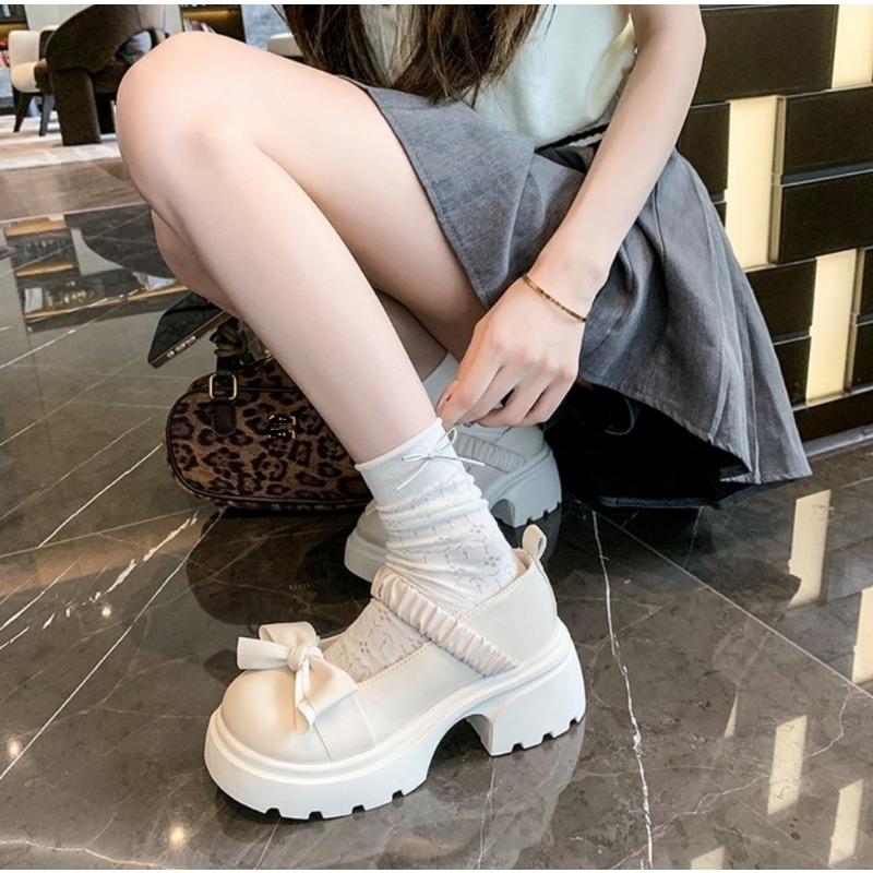 Туфли женские Мэри Джейн на толстом каблуке в японском стиле с бантом, летние винтажные французские слипоны из искусственной кожи, массивные туфли-лодочки для косплея
