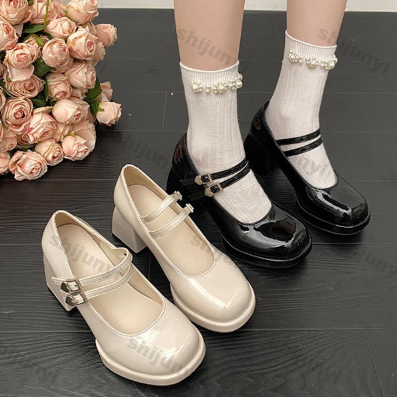 Женские туфли Мэри Джейн на толстом каблуке, весенние, новые, модные, на платформе, удобные, черные, мягкие, нескользящие, кожаные туфли