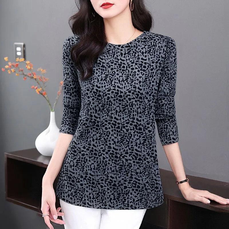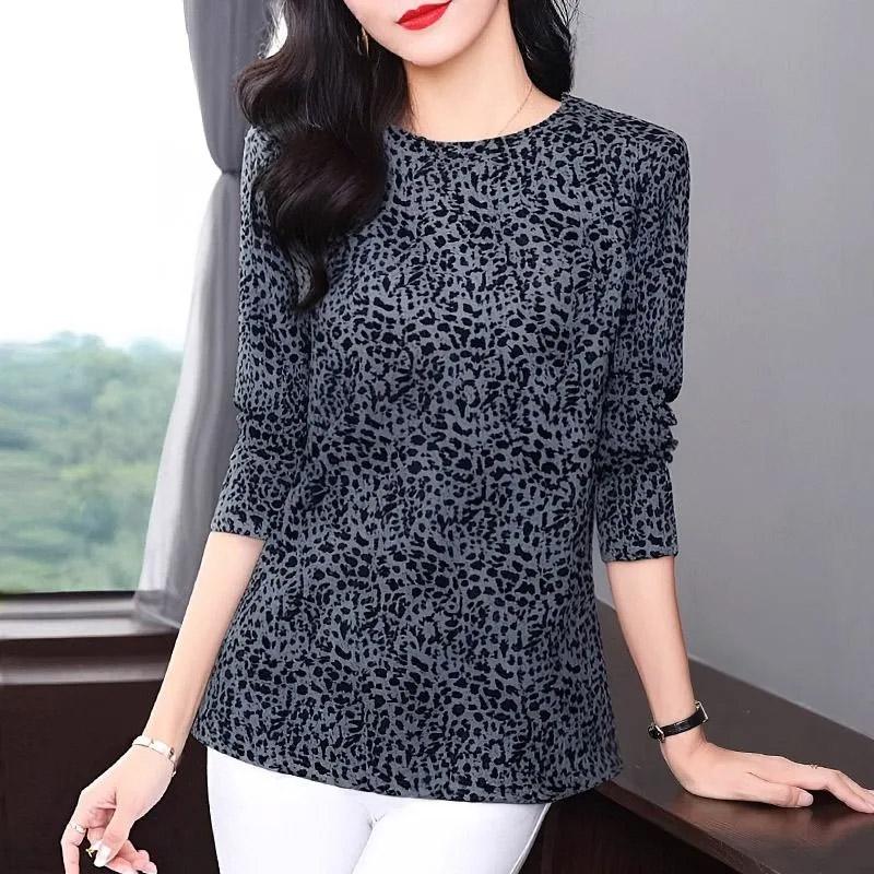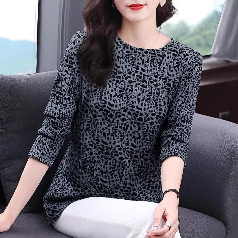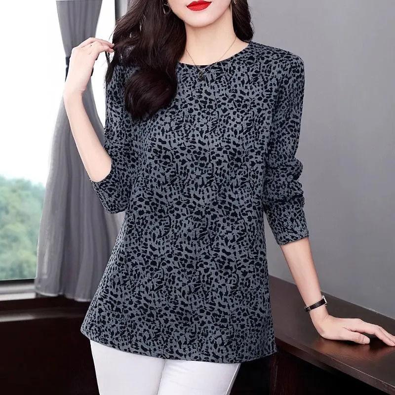 Футболка Топы Женская хлопковая блузка большого размера Удобная эластичная футболка с длинным рукавом Леопардовый круглый вырез Свободные топы