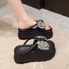 8СМ Платформа Шлепанцы Сандалии Женские Блестящие Бриллианты Бант Толстая Подошва Шлепанцы Женские Массивные Вьетнамки Летние Повседневные Пляжные Слайды