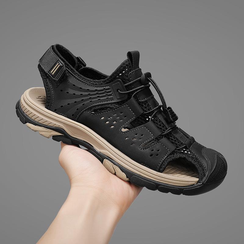 Мужская летняя повседневная кожаная обувь Новые трендовые мужские сандалии Быстросохнущие забродные туфли Aqua Shoes Нескользящие мужские пляжные туфли на плоской подошве с защитой от столкновений