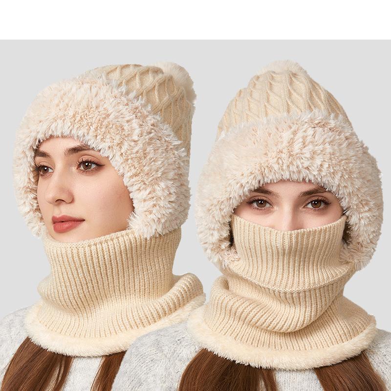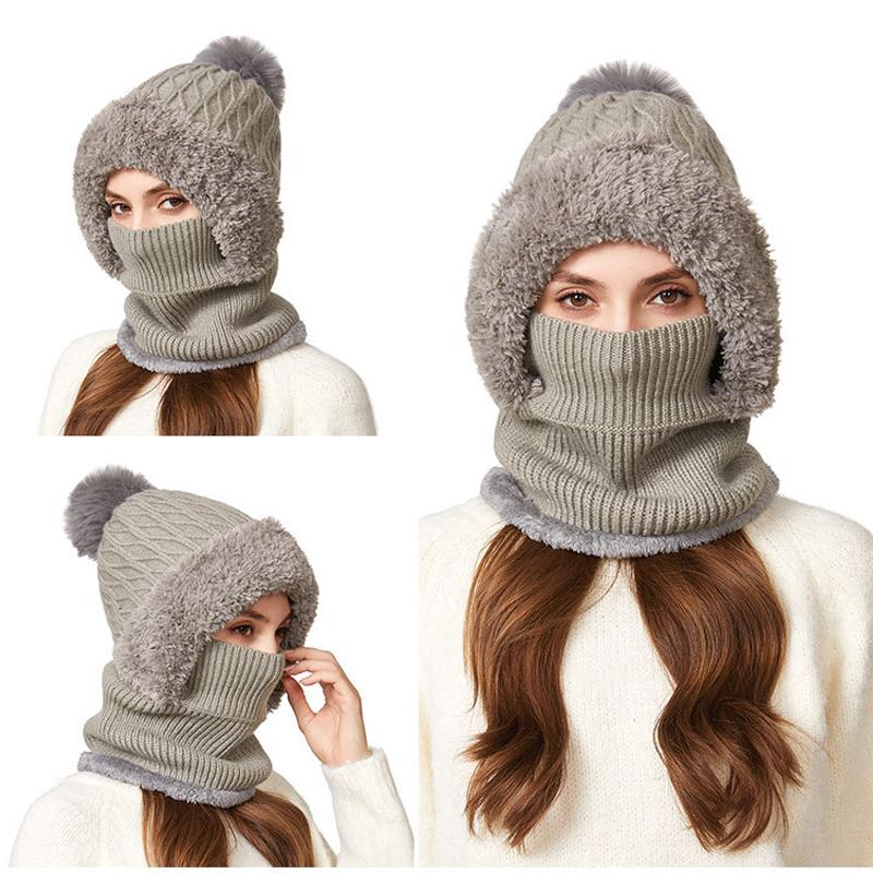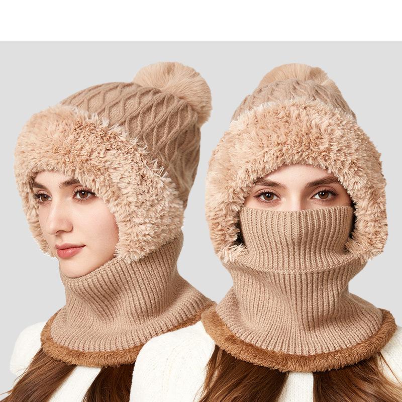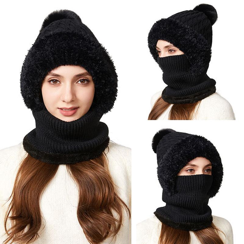 Вязаная шапка, толстая бархатная маска-шарф «все в одном», зимняя теплая шапка для женщин