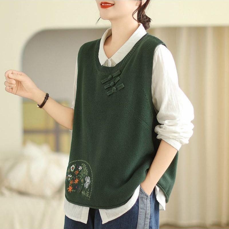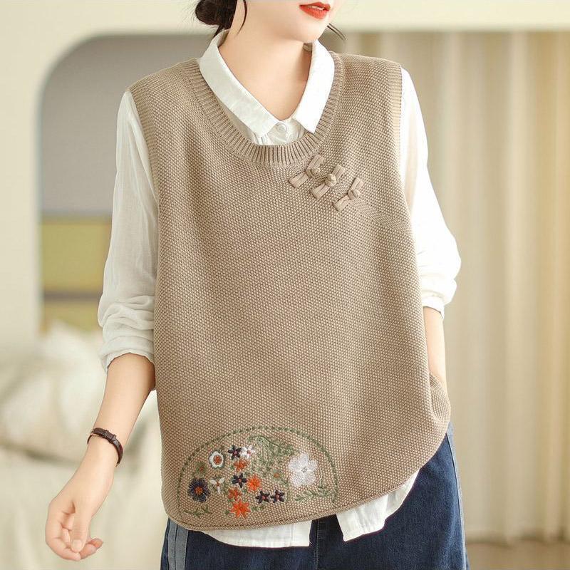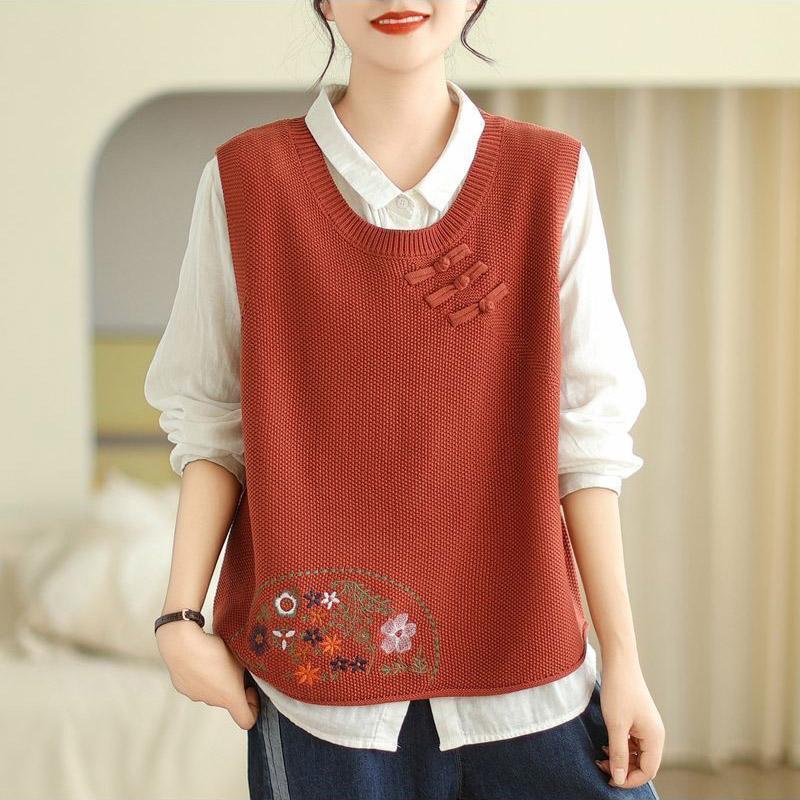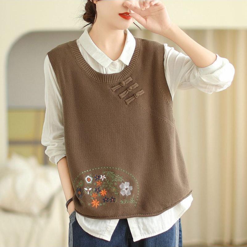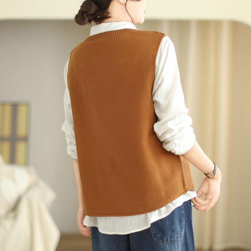 Трикотажный жилет женский свободный безрукавный свитер без рукавов винтажный свободный жилет льняной повседневный жилет с круглым вырезом